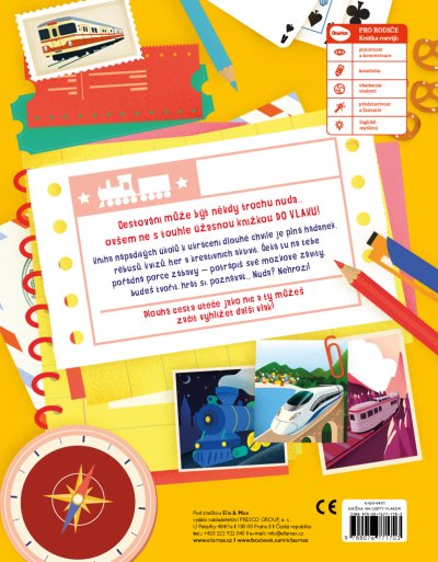 Cestování může být někdy trochu otrava… ovšem ne s touhle úžasnou knížkou DO VLAKU, která je plná nápaditých úkolů k ukrácení dlouhých chvílí! Najdete v ní spoustu hádanek, zapeklitých rébusů, zábavných kvízů, her, kreativních aktivit i zajímavých informací z oblasti cestování vlakem. Čeká tu na vás pořádná porce zábavy – potrápíte své hlavičky, budete tvořit, hrát si, poznávat… Nuda? Nehrozí! Dlouhá cesta vlakem uteče jako nic a vy můžete začít vyhlížet další výlet! Práce s knihou navíc rozvíjí představivost, fantazii a kreativitu, ale také pozornost, koncentraci a logické myšlení.