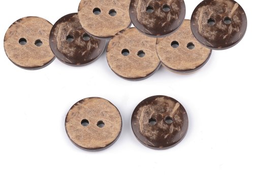 Dvoudírkové knoflíky jsou vyrobené z exotického kokosu. Využijete je jako zapínání na svetry, vesty nebo tašky. Jsou oboustranné. Knoflíky jsou baleny v sáčku. Velikost knoflíků naleznete v této tabulce.