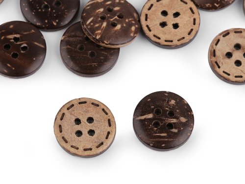 Kokosové knoflíky s reliéfem štepování působí exoticky. Vyniknou na košilích, halenkách, šatech, vestách, kabátech i doplňcích jako jsou tašky a batohy.