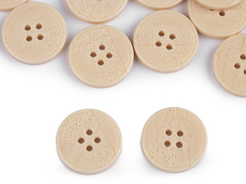 Čtyřdírkové knoflíky mají z části laserem vygravírovaný povrch. Vyniknou nejen na kabátech, ale i na svetrech, vestách apod. Velikost knoflíků naleznete v této tabulce.
