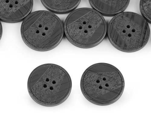 Čtyřdírkové knoflíky mají z části vygravírovaný povrch laserem. Vyniknou nejen na kabátech, ale i na svetrech, vestách apod. Velikost knoflíků naleznete v této tabulce.
