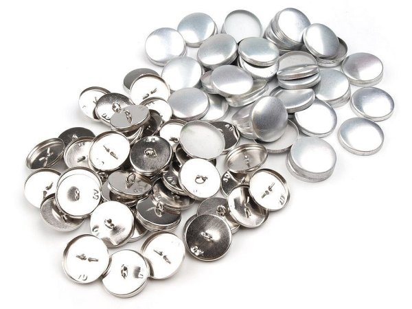 Knoflík na potahování, se spodním přišíváním, je celokovový - vrchní část je z hliníku. K potažení můžete zvolit různé materiály a ozdobit si knoflíky dle vlastních představ. Využijí je převážně čalouníci.