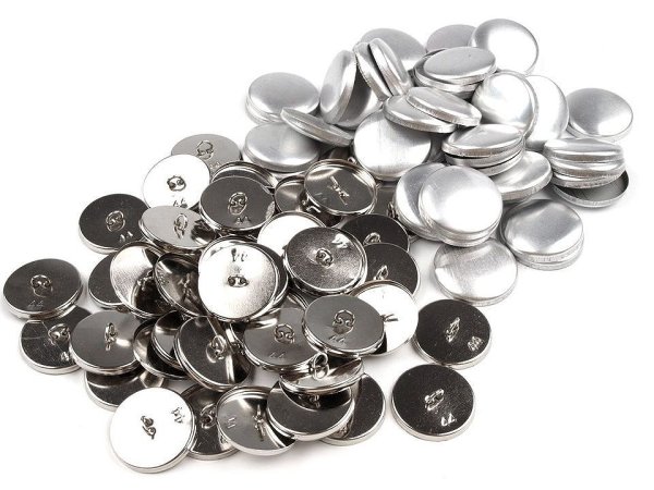 Celokovový knoflík na potahování má spodní přišívání. K výhodám takovýchto knoflíků patří, že si je můžete potáhnout jakýmkoliv materiálem a vytvořit si tak vlastní design. Využijí je [převážně] čalouníci.