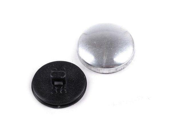 Knoflík na potahování se skládá ze dvou částí - kovové a plastové. K potažení můžete zvolit různé materiály. Potažené knoflíky skvěle ozdobí vaše halenky, šaty, saka apod.