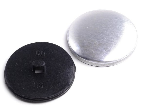 Knoflík na potahování se skládá ze dvou částí - kovové a plastové.