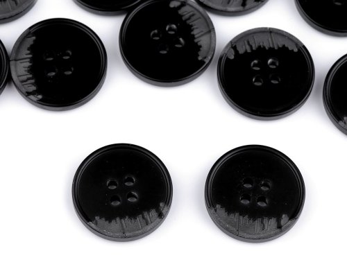 Efektní čtyřdírkové knoflíky vyniknou na košilích, sakách, bundách i svetrech. Část knoflíku je designově šrafovaná.
