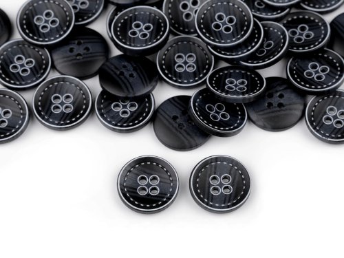 Čtyřdírkové knoflíky jsou zajímavé svým potiskem v podobě postranního prošití. Stylově vám ozdobí mikiny, svetry, kabátky apod. Velikost knoflíků naleznete v této tabulce.