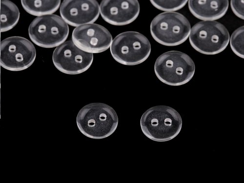 Transparentní dvoudírkové knoflíky jsou vhodné jako zapínání na košile, svetry, šaty i polštáře. Dají se použít také jako protikus. Mají kulatý tvar. [Knoflíky jsou baleny v sáčku.] Velikost knoflíků naleznete v této tabulce.
