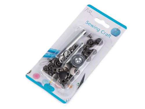 Kovové stiskací knoflíky využijete jako zapínání na doplňky jako jsou tašky, kabelky, batohy apod. K aplikaci vám poslouží razič (délka 7 cm), který je součástí balení. Knoflíky jsou vhodné na středně silné materiály typu koženka, loneta apod.