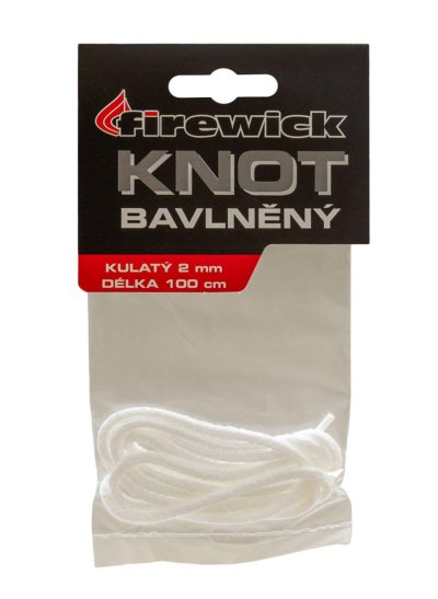 Knot lampový FIREWICK. Kulaté bavlněné knoty se používají dle použitého průměru do všech typů lamp, včetně lamp petrolejových a zahradních pochodní. Rozměry: průměr 2 mm, délka 100 cm. Barva: béžová.