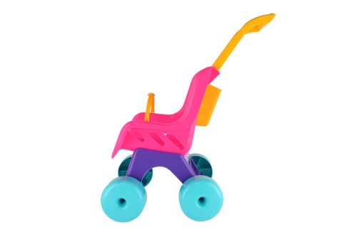Perfektní kočárek pro panenky na zahradu! Plastový kočárek se pyšní moderní konstrukcí sporťáku a snadnou údržbou. Krásné barevné vozítko na panenky si holčičky mohou vzít na procházku do parku nebo na dětské hřiště. Vhodné pro děti od 3 let.