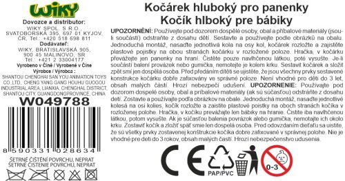 Kočárek hluboký. Velikost 59x57x32.5cm.