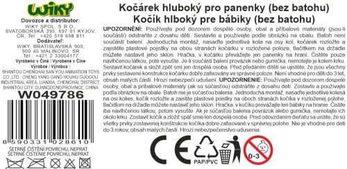 Kočárek hluboký. Velikost 37,5x64,5x66,5cm.