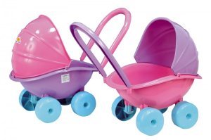 Kvalitní hluboký oválný kočárek z plastu ve tvaru vajíčka v holčičích barevných kombinacích, pro všechny malé maminky a jejich panenky - miminka.