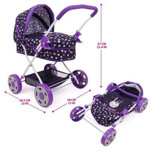 509 Crew Bunnicorn Daisy kočárek pro panenky • Výška rukojeti: cca 56 cm • Vhodné pro panenky do cca 46 cm • Skládací rám kočárku pro snadné skladování • Měkká pěnová rukojeť • Součástí je nákupní košík • S výsuvnou stříškou
