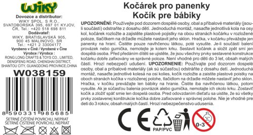 Kočárek hluboký pro panenky. Rozměry 43x34x64 cm.