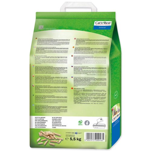 Neparfémovaná podestýlka Cat´s Best Universal tvořená peletami z dřevní vlákniny je vhodná především pro drobné savce a ptáky. Má vysokou absorpční schopnost, skvěle pohlcuje pachy a příjemně voní i bez umělých přísad. Použít ji lze jak samostatně, tak v kombinaci s jinými materiály. Díky dobré savosti je vhodná i pro místa s větší vlhkostí (např. v okolí napáječek). Steliva Cat‘s Best jsou plně biologicky odbouratelná, takže je můžete vyhodit i na kompost. Vyrábějí se z druhotných produktů dřevařské výroby v udržitelně obhospodařovaných lesích (certifikát PEFC), Hlavní přednosti podestýlky: