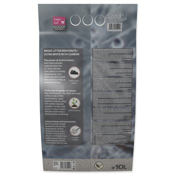 Stelivo pro kočky superprémiové kvality s aktivním uhlím. Je vyrobeno z vysoce kvalitního, jemnozrnného bentonitu, tudíž má vynikající absorpční schopnosti.