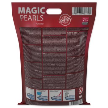 Neparfémované silikátové stelivo pro kočky. Díky mikropórům na sebe stelivo velice rychle váže tekutiny, které uzamkne uvnitř krystalků a eliminuje nepříjemný zápach. Tím zároveň zabraňuje množení nebezpečných bakterií. Díky tomuto inovativnímu procesu má stelivo Magic Pearls extrémní savost a udržuje toaletu suchou a čistou. Stelivo Magic Pearls je bezprašné a neulpívá na tlapkách a srsti zvířat, takže není kočkami vynášeno mimo toaletu. Stelivo je vhodné i pro dlouhosrstá plemena koček. Stelivo Magic Pearls v toaletě vydrží absorbovat pachy a vlhkost až 4 týdny (při použití jednou kočkou), proto je jeho použití také velice ekonomické, není třeba jej měnit tak často jako jiné druhy steliv.