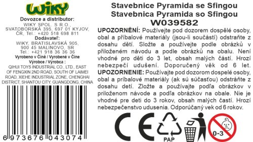KOCO Stavebnice Pyramida se Sfingou 410 dílků. Rozměry 11,5x8x5,5 cm. Součástí 2 figurky. Obrázkový návod na sestavení součástí.