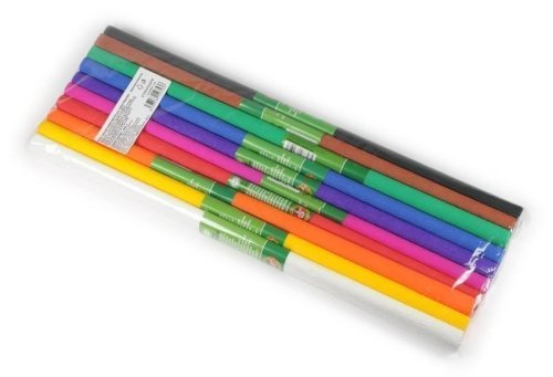 Výrobek se používá jako krepový papír pro školní, výtvarné a aranžérské práce. Souprava krepového papíru 10 ks v následujících barvách: vínová, červená, tmavě oranžová, světle oranžová, tmavě žlutá, světle zelená, zelená, tyrkysová, modrá, tmavě fialová. Jednotný krepový papír o rozměru 2000 x 500 mm je složen do balíčku o rozměrech cca 500 x 35 x 18 mm. 10 kusů krepového papíru je vloženo do folie. Stupeň krepování 30-40 %.