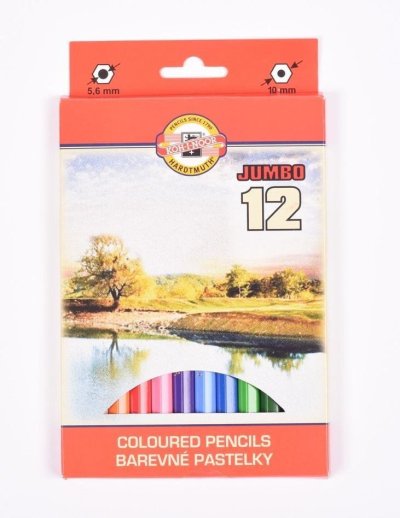 Šestihranné pastelové tužky OK-10 mm v dřevěném plášti, s tuhou o průměru 5,6 mm. Silný profil tužky je vhodný pro držení a vedení tužky. Balené po 12 ks mix barev do kartonové krabičky. Jsou vhodné jak pro školní použití, tak i umělecké kreslení. Mají sytou barevnou stopu.