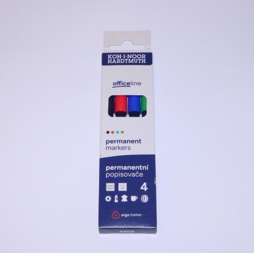 Permanentní popisovače plněné inkousty na alkoholové bázi, odstín červený, modrý, zelený, černý. Stopa písma je odolná otěru, působení vody a povětrnostních vlivů. Použití je možné na většinu povrchů, zejména jsou určeny pro psaní na neporézní materiály jako kovy, sklo a porcelán, plastické hmoty, kůže, dřevo, beton a kámen, lepenka a karton. V případě potřeby je možné z neporézních materiálů smýt popis lihem. Jsou osazeny kulatými hroty o průměru 2 mm a je možné psát šířkou stopy písma 1 - 2 mm, délka 600 m.