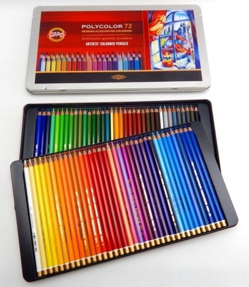 Souprava 72 kusů šestihranných pastelek KOH-I-NOOR Polycolor potěší každého začínajícího i zkušeného umělce. Pastelky vynikají světlostálostí, čistotou barev, sytou stopou, barevným rozsahem a dobře se ořezávají. Průměr tuhy: 3,8 mm Průměr pastelky: 7 mm Délka pastelky: cca 17,5 cm.