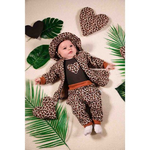 Stylový bavlněný kojenecký klobouček Nicol Mia pro všechny malé parádnice. Klobouček zdobí vzor leopardí srsti a volánek. Zavazuje se na tkaničky. Miminko se v něm bude cítit velmi příjemně a útulně. Mia je nová dechberoucí kolekce navržena s ohledem na potřeby našich nejmenších. Materiál: 95% bavlna, 5% elastan.