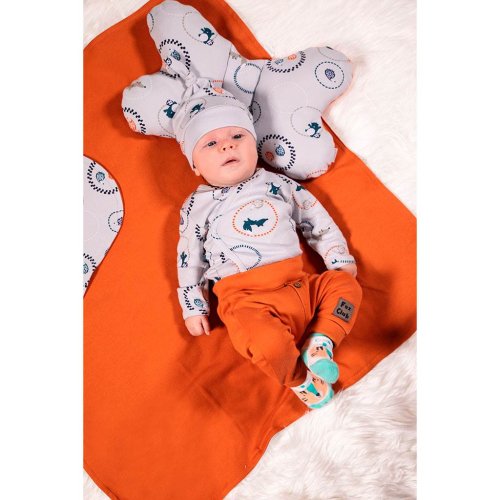Stylová čepička Nicol Fox Club, s roztomilým uzlíkem v horní části. Čepičku zdobí zajímavý potisk lišek. Lem je široký a netlačí na hlavičku miminka. Příjemná na dotek a krásně sedí na hlavičce. Fox Club je nová dechberoucí kolekce navržena s ohledem na potřeby našich nejmenších. Materiál: 100% bavlna.