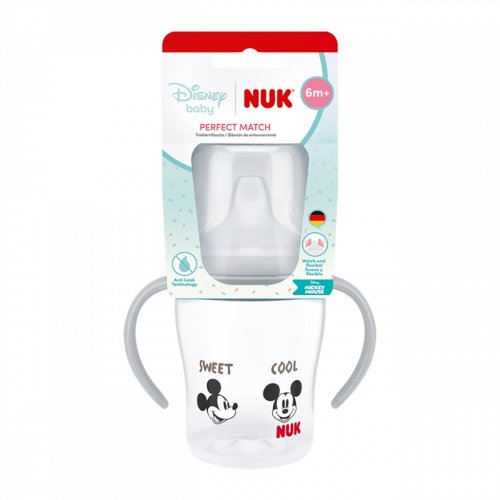 Lahvička na učení NUK Perfect Match Disney, Mickey Mouse pomáhá přirozenému přechodu z lahvičky na hrneček.