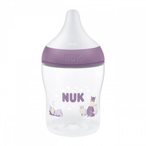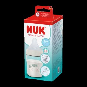 Kojenecká láhev NUK Perfect Match s kontrolou teploty a měkkou silikonovou savičkou. Speciální tvar typický pro savičky NUK s ortodontickou antikolikovou savičkou je modelován podle mateřské bradavky při kojení. Ponechává dostatek prostoru pro přirozené sací pohyby jazyka i čelisti. Velká, široká opora rtů při pití připomíná matčinu pokožku. Lahvička je navržena tak, aby miminko nepřišlo do kontaktu s pevnými plastovými částmi. Vylepšený systém proti polykání vzduchu při pití Anti Colic Air System zajišťuje přirozený tok mléka, aby dítě pilo uvolněně bez polykání vzduchu. Hladce se zužující tvar s antikolikovou funkcí pro plynulý a nerušený průtok pití, velikost S (od narození, pro mateřské mléko, čaj nebo vodu). Kojenecké láhve jsou nyní vybaveny novou NUK kontrolkou teploty a pomáhají tak zabránit tomu, aby vaše dítě pilo příliš horký příkrm. Kontrolka vypadá jako teploměr, je umístěna mezi ryskami a teplota obsahu láhve změní její barvu. Pokud je příkrm příliš horký, modrá kontrolka se změní na bílou. V ideálním případě by měl příkrm mít tělesnou teplotu (37 °C), což odpovídá modrému zabarvení displeje. Vyrobena z vysoce kvalitního nerozbitného plastu polypropylenu a neobsahuje BPA (Bisfenol A). Obsah láhve 150 ml. Vhodná pro děti od narození, S (malý otvor = pro mateřské mléko, vodu, čaj). Klinicky testováno.<BR>Charekteristika:<BR>- praktický displej NUK kontroly teploty, který změní teplotu z modré (studené) na<BR>bílou (příliš horké)<BR>- trvale hygienická láhev se vzhledem vysoce kvalitního plastu, příjemná na dotek<BR>- bez škodlivých látek a zápachu – neobsahuje BPA<BR>- bezpečné uchopení a stabilita – díky jemně vytvarované láhvi a široké základně<BR>- neomezený počet kombinací – lze kombinovat s veškerým příslušenstvím odsávaček mateřského mléka NUK Perfect Match a NUK Soft&Easy-nekapající-díky víčku láhev neteče a savička je chráněna před znečištěním. Kojenecké láhve jsou v souladu s evropskou normou EN14350.