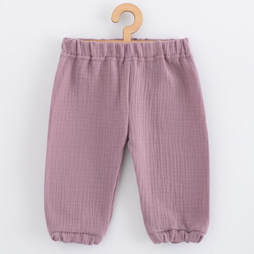 Stylová a praktická 2-dílná dětská souprava české značky New Baby. Mušelínová soupravička se skládá z trička s krátkým rukávem a kalhot. Velmi praktický set pro děti v jarních i letních dnech. Mušelínové tričko je velmi pohodlné už jen tím, že je vyrobeno z kvalitní a prodyšné mušelínové bavlny se zapínáním na cvočky pod krčkem. Mušelínové kalhoty s moderním střihem jsou velmi praktické, v pase a na nohavičkách je gumička, která netlačí.