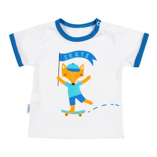 2-dílná bavlněná soupravička české značky New Baby Liška. Soupravička obsahuje tričko a kraťásky. Tričko s krátkým rukávem s barevným lemováním okolo krčku a rukávů je zdobeno veselým obrázkem lišky a nápisem SKATE. Tričko má zapínání na ramínku pro snadné oblékání. Pohodlné kraťásky jsou jednobarevné s gumičkou v pase. Soupravička je vyrobená s ohledem na potřeby malých dětí s velmi příjemňoučkého a jemného materiálu. Složení 100% bavlna