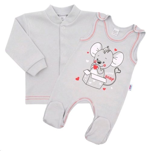 Nápaditá bavlněná kojenecká soupravička New Baby Mouse pro miminka. Součástí soupravičky jsou dupačky a kabátek. Kabátek je jednobarevný. Zapínání na cvočky po celé délce usnadňuje oblékání. Dupačky jsou zdobené barevným lemováním a velkým obrázkem myšky. Zapínání na cvočky na ramínku a mezi nožičkami usnadňuje oblékání a přebalování. Soupravička má velice příjemňoučký a kvalitní materiál, který je ideální pro miminka. Pro New Baby je velmi důležitá spokojenost zákazníka a právě proto vám nabízíme naši novou kvalitní kolekci Mouse. Mouse je nová dechberoucí kolekce od New Baby. Složení: 100% bavlna. Produkt české značky.