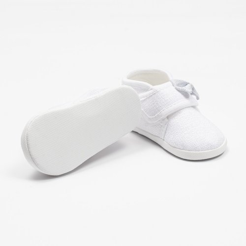 Kojenecké capáčky New Baby pro miminka. Krásné botičky s moderním vzhledem na suchý zip. Capáčky přiléhají k nožičce a mají široký vnitřek, což umožňuje volný pohyb prstů a svalů. Výrobek není určen k chůzi. Jsou velmi lehké s tenkou syntetickou podrážkou. Složení: tkanina typu len:100% polyester. Podrážka: syntetický materiál PVC bez BPA. Délka vnitřní stélky 10 cm. Určeno pro děti 0-3 měsíců. Dodáváné v praktické krabičce. Upozornění: pod textilní vložkou se někdy nachází papírová vložka, která drží tvar capáčky. Před prvním použitím odstraňte tuto papírovou vložku.