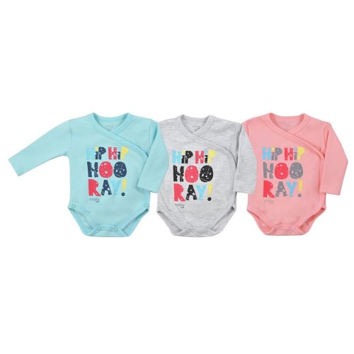 Kojenecké celorozepínací body Koala Hip-Hip. Barevné body je zdobeno nápisem. Zapíná se na cvočky po celé délce a mezi nožičkami, což usnadňuje oblékání a přebalování. Body je pro miminka důležitým kouskem oblečení. Při jakémkoliv pohybu jsou zádička miminka stále přikrytá. Složení: 100% bavlna.