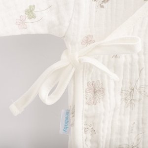 Krásné lehounké body s dlouhým rukávem české značky New Baby Zoe. Mušelínové zavinovací body s dlouhým rukávem celopotištěné květinovým vzorem ocení miminka díky kvalitnímu materiálu. Zapínání na boku na cvočky a mezi nožičkama na cvočky. Složení: 100% bavlna. Mušelín je jedna z nejčistších, nejjednodušších a nejjemnějších tkanin na světě. Jemně tkaný prodyšný materiál je tak dokonalý, že si jej zamilují děti po celém světě. Lehká struktura umožňuje mušelínu „dýchat“ a zajišťuje dostatečnou cirkulaci vzduchu, čímž snižuje riziko přehřátí. Tato vlastnost pomáhá udržet Vaše dítě v pohodlí, bezpečí a rodiče v klidu. Mušelín je velmi odolný a to tak, že bez problémů zvládá opakované praní a postupem času je lehčí a jemnější.
