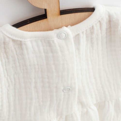 Módní mušelínové kojenecké šatičky české značky New Baby Elizabeth pro všechny malé parádnice. Šatičky jsou bez rukávů ve tvaru písmene A. Spodní část má krásně nařasenou sukýnku. Zapínání na cvoček na zadní straně usnadní oblékání. Šaty mají velmi příjemňoučký, měkoučký a kvalitní materiál, který je vhodný pro miminka. Jsou lehounké a velmi příjemné při nošení. Pro New Baby je velmi důležitá spokojenost zákaznika a právě proto vám nabízíme naši kvalitní letní mušelínové šatičky. Složení: 100% bavlna. Mušelín je jedna z nejčistších, nejjednodušších a nejjemnějších tkanin na světě. Jemně tkaný prodyšný materiál je tak dokonalý, že si jej zamilují děti po celém světě. Lehká struktura umožňuje mušelínu „dýchat“ a zajišťuje dostatečnou cirkulaci vzduchu, čímž snižuje riziko přehřátí. Tato vlastnost pomáhá udržet Vaše dítě v pohodlí, bezpečí a rodiče v klidu. Mušelín je velmi odolný a to tak, že bez problémů zvládá opakované praní a postupem času je lehčí a jemnější.