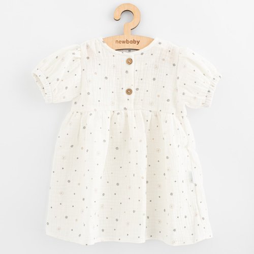 Módní mušelínové kojenecké šatičky české značky New Baby Zora pro všechny malé parádnice. Šatičky jsou s krátkým rukávem ve tvaru písmene A. Spodní část má krásně nařasenou sukýnku. Zapínání na knoflíčky na přední straně usnadní oblékání. Šaty mají velmi příjemňoučký, měkoučký a kvalitní materiál, který je vhodný pro miminka. Jsou lehounké a velmi příjemné při nošení. Pro New Baby je velmi důležitá spokojenost zákaznika a právě proto vám nabízíme naši kvalitní letní mušelínové šatičky. Složení: 100% bavlna. Mušelín je jedna z nejčistších, nejjednodušších a nejjemnějších tkanin na světě. Jemně tkaný prodyšný materiál je tak dokonalý, že si jej zamilují děti po celém světě. Lehká struktura umožňuje mušelínu „dýchat“ a zajišťuje dostatečnou cirkulaci vzduchu, čímž snižuje riziko přehřátí. Tato vlastnost pomáhá udržet Vaše dítě v pohodlí, bezpečí a rodiče v klidu. Mušelín je velmi odolný a to tak, že bez problémů zvládá opakované praní a postupem času je lehčí a jemnější.