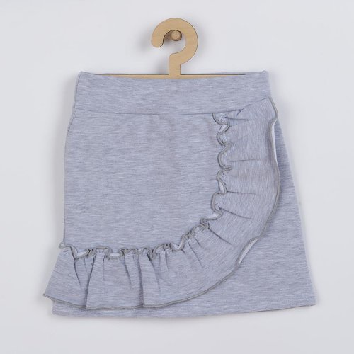 2-dílna soupravička pro holčičky české značky New Baby Butterflies. Soupravička se skládá z trička a sukýnky. Tričko s krátkými nařasenými rukávy je zdobeno obrázkem motýlků. Zapínání na ramínku na cvočky ulehčí oblékání přes hlavičku miminka. Šedou melírovanou sukýnku zdobí krásný volánek, který dodává sukýnce ten správný šmrnc. V pase je širší guma, která netlačí na bříško miminka. Složení: tričko: 100% bavlna, sukýnka: 95% bavlna, 5% elastan.