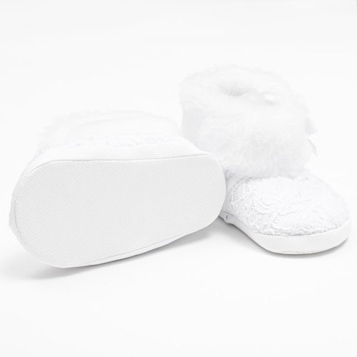 Kojenecké zimní capáčky New Baby pro miminka. Krásné, teplé krajkové kozačky na suchý zip. Vnitřní část je vystlaná rounovou pleteninou-100% polyester. Capáčky přiléhají k nožičce a mají široký vnitřek, což umožňuje volný pohyb prstů a svalů. Výrobek není určen k chůzi. Jsou velmi lehké s tenkou syntetickou podrážkou. Složení: 100% polyester, rounová pletenina-100% polyester. Podrážka: syntetický materiál PVC bez BPA. Délka vnitřní stélky 10 cm. Určeno pro děti 0-3 měsíců. Dodáváné v praktické krabičce. Upozornění: pod textilní vložkou se někdy nachází papírová vložka, která drží tvar capáčky. Před prvním použitím odstraňte tuto papírovou vložku.