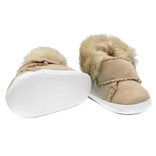 Kojenecké zimní capáčky New Baby pro miminka. Krásné, teplé semiškové capáčky s moderním vzhledem a zapínáním na suchý zip. Vnitřní část je vystlaná rounovou pleteninou-100% polyester. Capáčky přiléhají k nožičce a mají široký vnitřek, což umožňuje volný pohyb prstů a svalů. Výrobek není určen k chůzi. Jsou velmi lehké s tenkou syntetickou podrážkou. Složení: ekologický semiš - 100% polyester, rounová pletenina-100% polyester. Podrážka: syntetický materiál PVC bez BPA. Délka vnitřní stélky 11 cm. Určeno pro děti 3-6 měsíců. Dodáváné v praktické krabičce. Upozornění: pod textilní vložkou se někdy nachází papírová vložka, která drží tvar capáčky. Před prvním použitím odstraňte tuto papírovou vložku.