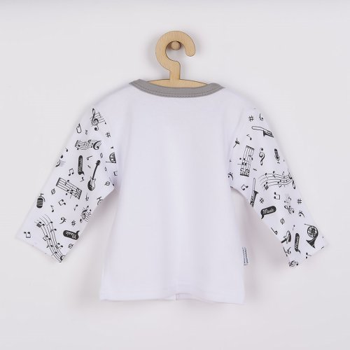 Bavlněný kojenecký kabátek New Baby Music pro miminka. Kabátek je jednobarevný a rukávky jsou celopotištěné notičkami a hudebními nástroji. Zapínání na cvočky po celé délce. Náš hravý kabátek je vhodný pro kluky i holčičky. Složení: 100% bavlna. Rozměry: obvod kolem hrudníku cca 44 cm, délka rukávu cca 20 cm, celková délka cca 28 cm.