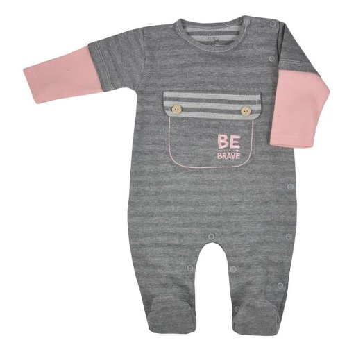 Kojenecký overal Koala BE BRAVE. Overálek je zdoben moderním a nápaditým designem, krásnou melírovanou barvou, nápisem BE BRAVE a kapsičkou s knoflíky. Praktické boční zapínání na cvočky po celé délce, na ramínku a mezi nožičkama velmi usnadní oblékání a přebalování. Složení: 100% bavlna.