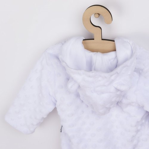 Overálek s kapucí a oušky Nicol Bubbles pro miminka. Je vyrobený z Minky látky, která je velmi hebká na dotek s malými výstupky. Overálek je podšitý bavlněnou podšívkou. Podšívka je důležitou součástí oděvů. Zvyšuje trvanlivost oděvu a rozhoduje o tom, jak se v oblečení bude dítě cítit. Podšívka je hladká, prodyšná, příjemná na dotek a zároveň zvýší komfort nošení. Boční zapínání po celé délce na zip usnadní oblékání. Materiál: 100% polyester-minky, podšívka 100% bavlna.