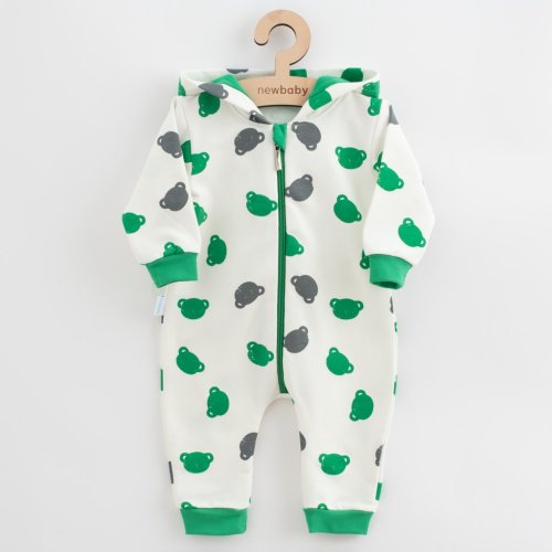 Roztomilý a praktický overal s kapucí české značky New Baby Little One. Overálek je celopotištěný medvídky, má zapínání na zip po celé délce a pružné lemy na rukávcích a nohavičkách. Kapuce je podšitá barevnou podšívkou a je zdobena roztomilou bambulkou. Overal je vyroben z pohodlné teplákoviny. Vhodný pro celoroční nošení. Materiál: 96% bavlna, 4% elastan.
