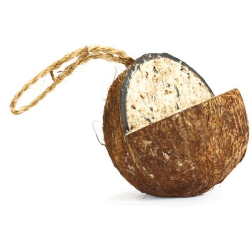 Plněný kokos je vyroben z přírodních materiálů. Závěsné krmítko odpovídá správným nutričním složením a je ideální jako doplněk pro venkovní ptactvo. Složení: obiloviny, hovězí lůj, semena. Krmný návod: Podávejte bez omezení.