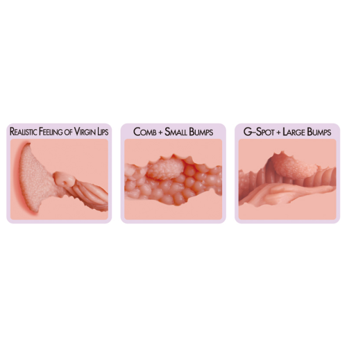 Masturbátor Haru má velké, hladké stydké pysky, mírně napnutý otvor a žebrovanou, napnutou vnitřní strukturu s bodem G.