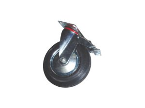 Otočné kolečko s brzdou, které je určeno pro nerovné a tvrdé povrchy, často montováno u kontejnerů na tříděný odpad.